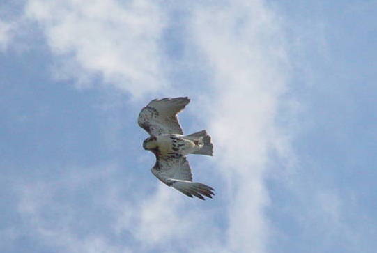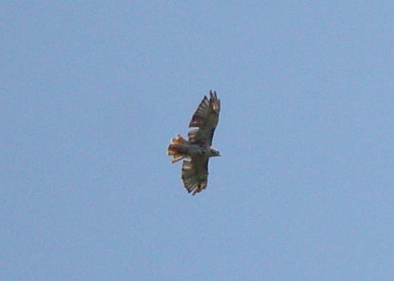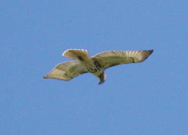 An immature Red-tailed Hawk seen kiting over the watch on 17 September 2003. Immature Red-tailed Hawks have narrowly banded tails instead of the bright red tail of adult birds.